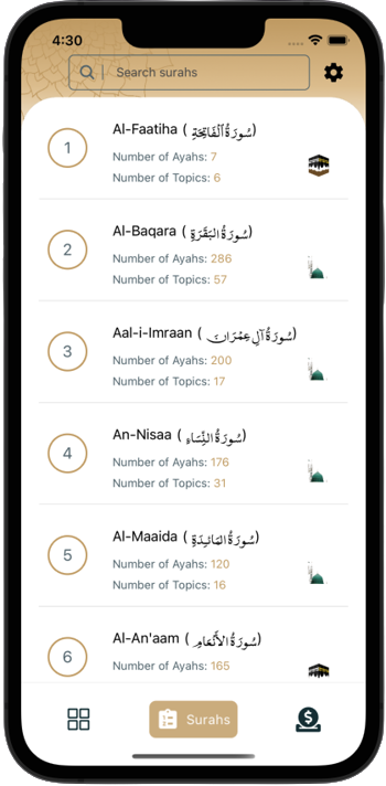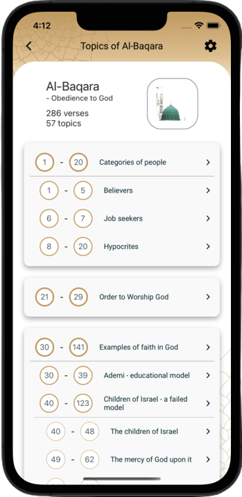 This application is designed to help readers of the Qur'an in various ways to better understand its luminous messages and to focus on specific topics